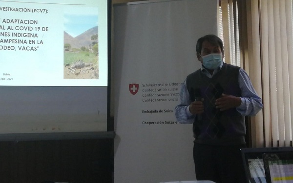 La segunda presentación: “La Resiliencia y adaptación sociocultural al COVID-19 de las poblaciones indígena originaria campesina en los sistemas de vida del Municipio de Vacas, Cochabamba”, estuvo a cargo del representante del Centro de Investigación AGRUCO de la Facultad de Ciencias Agrícolas, Pecuarias y Forestales (FCAPyF), Dr. Nelson Tapia Ponce.