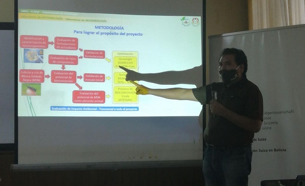 El investigador del Laboratorio de Entomología de la Facultad de Ciencias Agrícolas, Pecuarias y Forestales (FCAPyF), Ilich Alberto Figueroa, describió su proyecto sobre el “Servicio ambiental de microorganismos y entomofauna para una adecuada gestión de residuos sólidos orgánicos en domicilios particulares”. Figueroa mencionó que para el proyecto trabajarán con microorganismos y contarán con la cría de insectos como la mosca soldado negra, la cual, tiene la capacidad de deshacer residuos. Se promoverá la realización de compostas incentivando a las familias que tengan sus propios huertos. En el equipo de trabajo integrarán a estudiantes interesados en participar del proyecto.